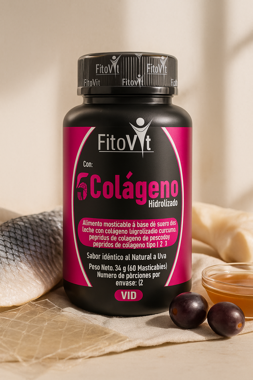 ✨ Colágeno hidrolizado tipo 1, 2 y 3 en tabletas masticables sabor uva.